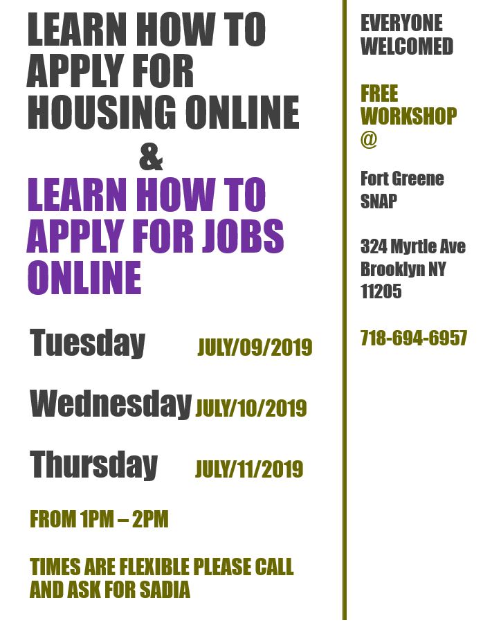 Free Workshop on How to apply for Housing and Search for jobs Online