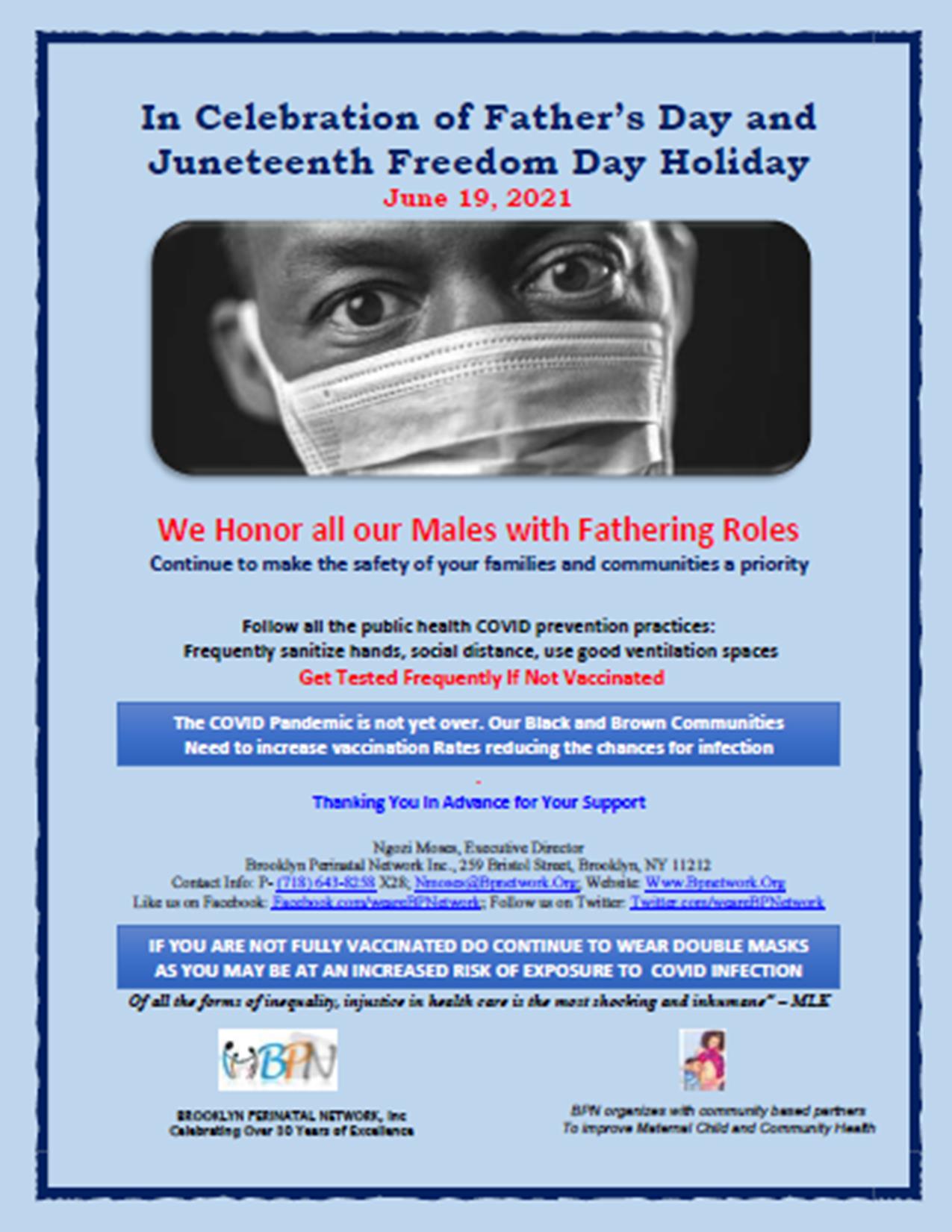 In Celebration of Father’s Day & Juneteenth Freedom Day Holiday June 19, 2021